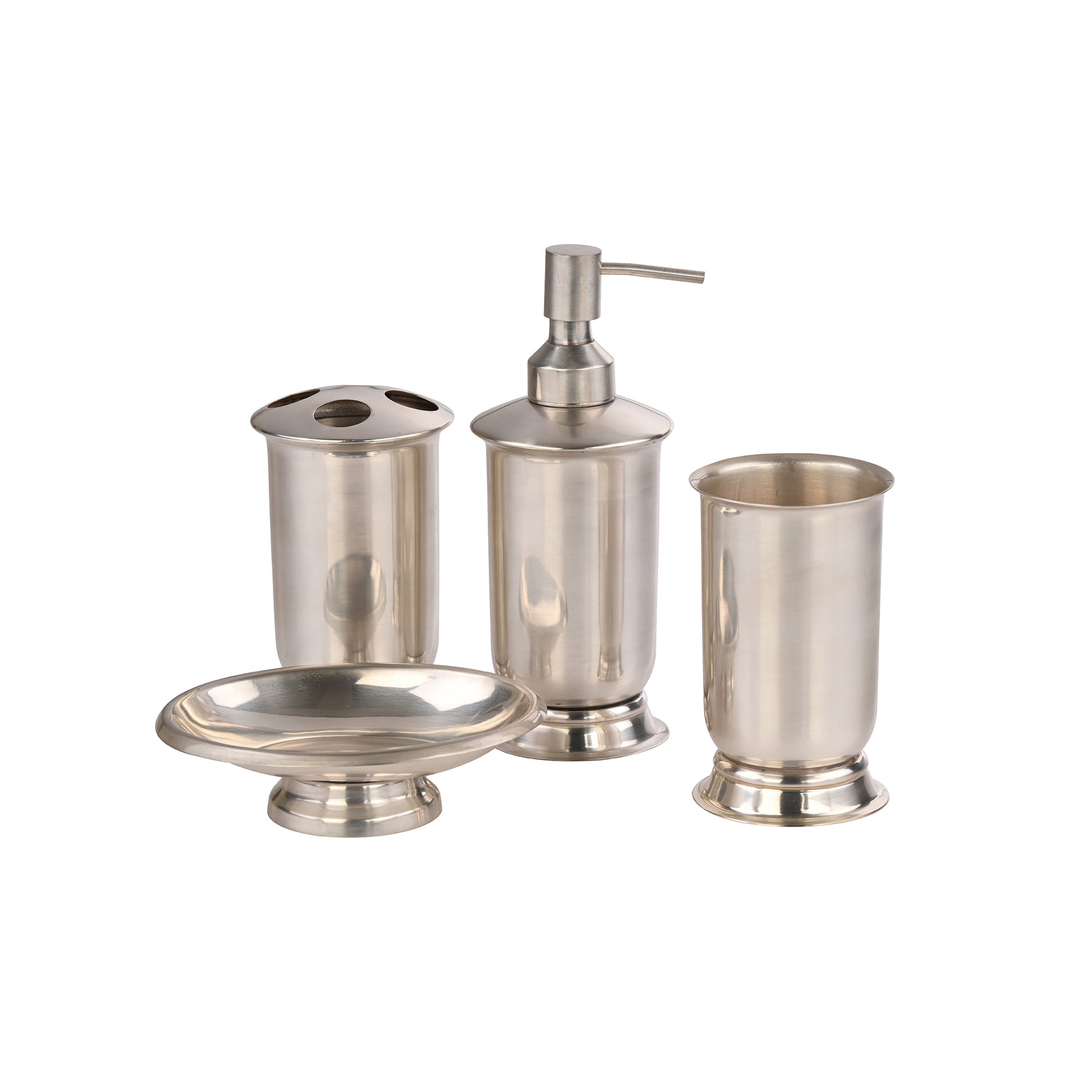 Luxe bathroom set / accessory crafted with brass. Four pieces set is compact. Design to compliment to any bathroom. High quality, clean contemporary design.