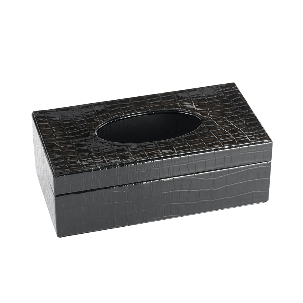 Tissue Box Faux Croc Black