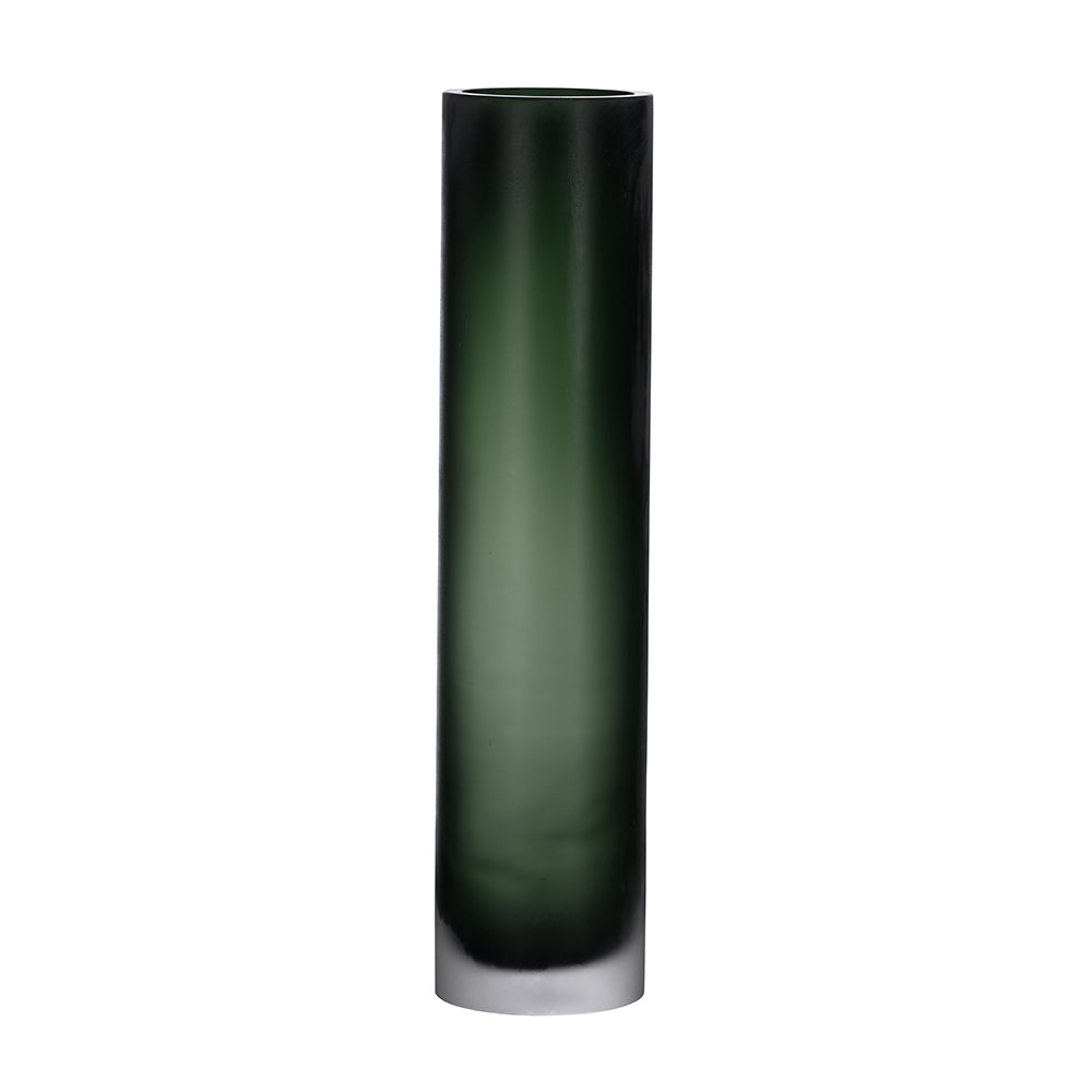 Sleek long tall/ long thick glass vase in black fog colour. Unique & elegant for your favourite flowers & greens or just used as an artefact in itself.
