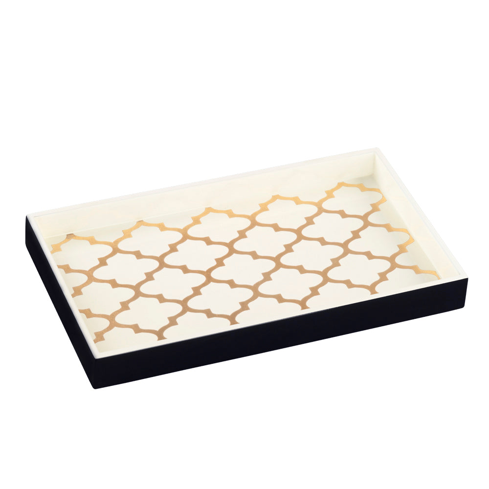 Decorative Lacquered Tray White with Gold Pattern Rectangle