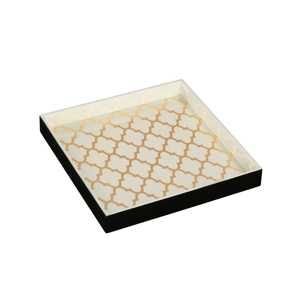 Sleek and contemporary decorative white and gold square tray in lacquer- an ancient craft of Vietnam. Aesthetically pleasing for any space.