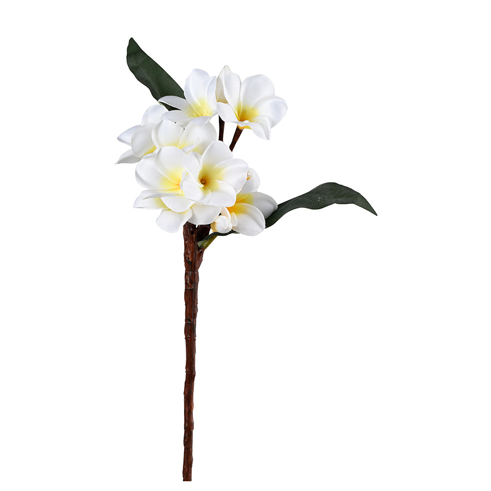 Decorative bunch cream and yellow frangipani . Faux flowers & greens add seasonal flair to any ambiance. Looks great in multiples as part of a larger arrangement.