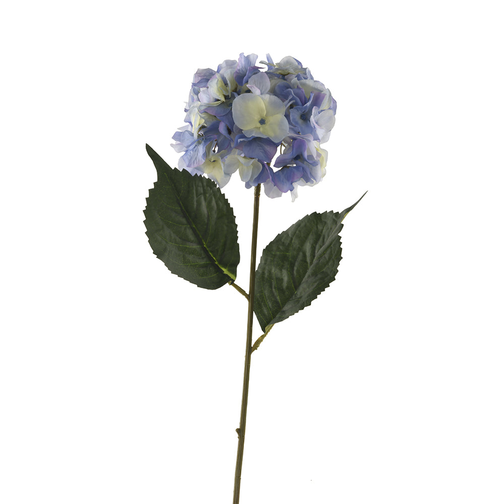 Decorative single stem blue French Hydrangea. Faux flowers & greens add seasonal flair to any ambience. Looks great in multiples as part of a larger arrangement.
