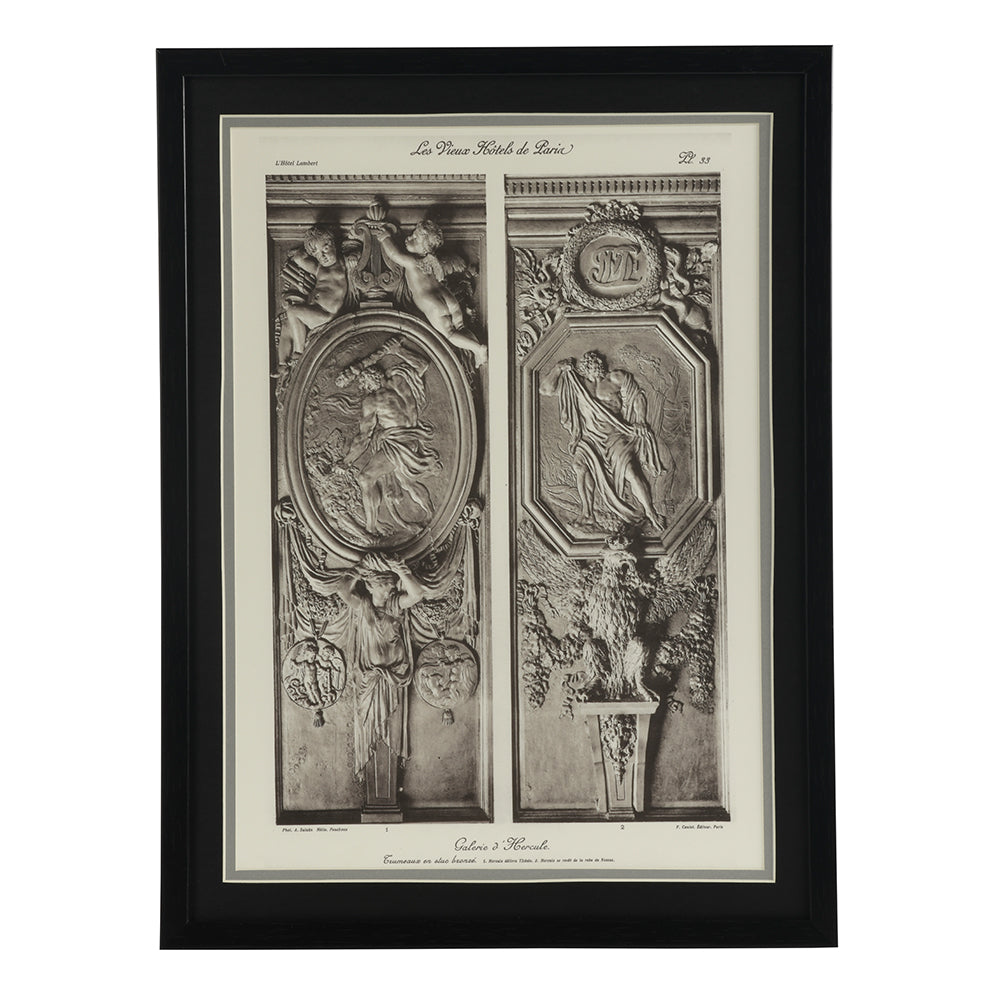 Vintage French Galerie D Hercule lithograph print. Historic architectural collectables that add an old world charm to any space. Light weight, easy to hang comes ready to use. Ideal for collectors.