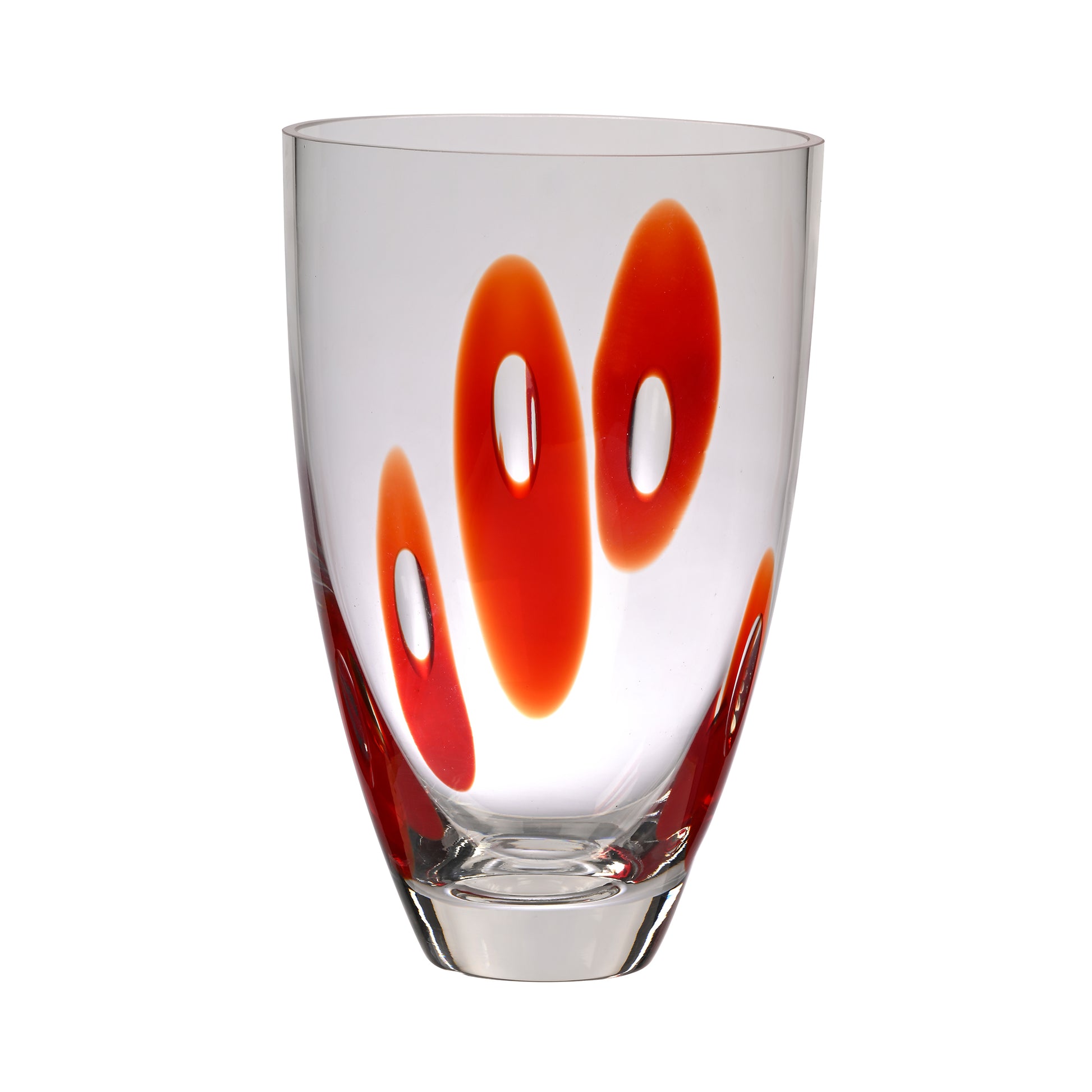 Add a pop to your décor with this vibrant Circles Red Dot Glass Vase. Perfect for displaying your favorite flowers & greens or just used as an artefact in itself.