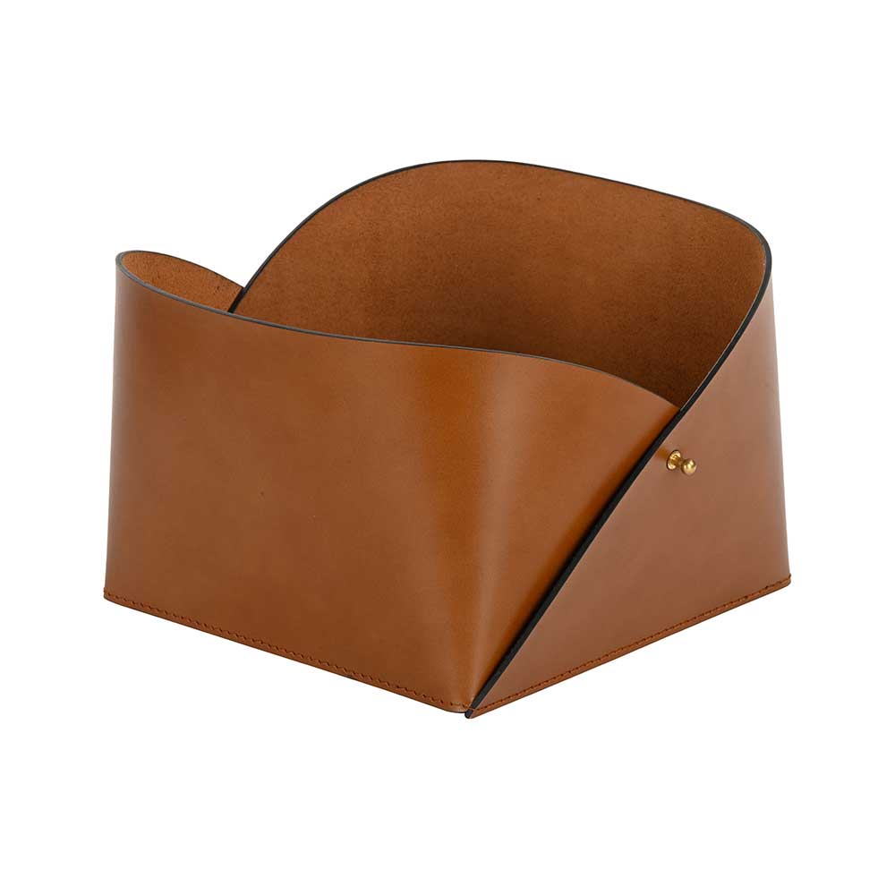 Artistically crafted light brown leather basket with metal detailing. Perfect for pairing as a decorative or multipurpose storage. Place them by your bedside, living room or study room to keep your space free of clutter with this high quality artfully made piece. Available In three sizes.