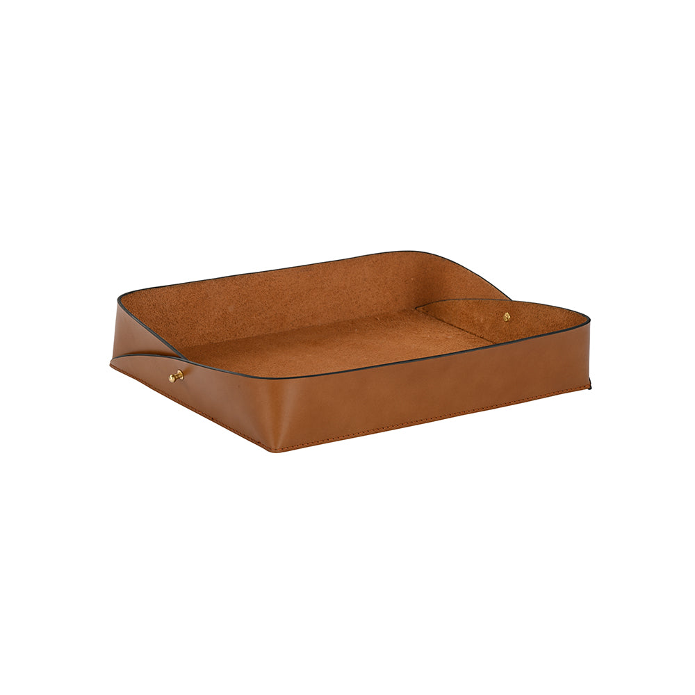 Genuine brown leather paper tray with smooth inner finish, that goes well with all other leather accessories. Ideal for office desk or work place at home.