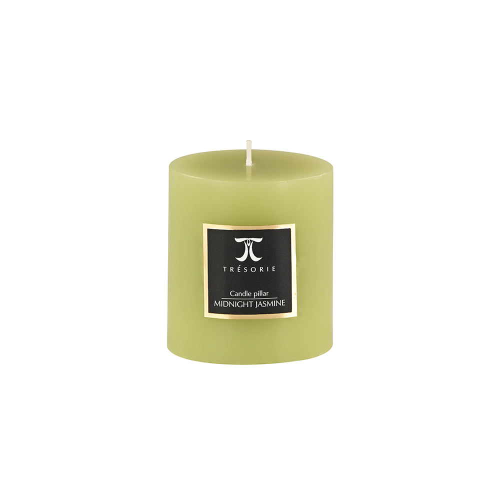 Scented hand poured wax pillar candle, flickers with a feel of freshness and sophistication. TRESORIE exclusive.