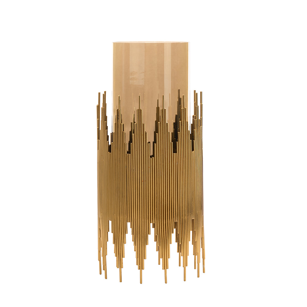 Our striking candle holder features a glass cylinder surrounded by antique metal rods.Modern design, it adds a touch of elegant character to both contemporary and traditional décors
