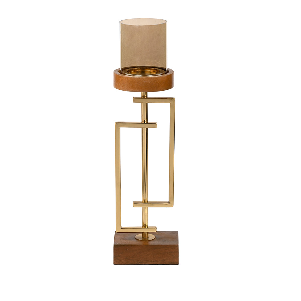Neo exquisite metal and wood candle holder with glass is a great accessories to illuminate your space, a wonderful accent to your indoor and outdoor settings.