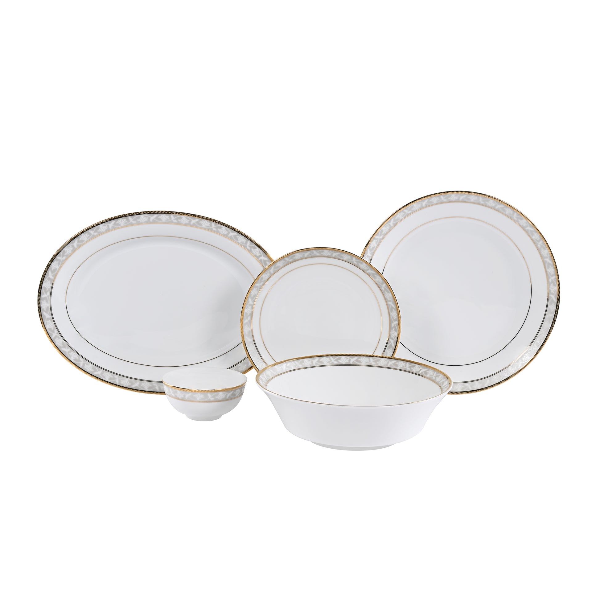 Bring timeless elegance to your dining table with the Urmi 21-Piece Dinner Set, exquisitely crafted from fine porcelain. Designed with a refined touch of luxury, each piece features a graceful pattern and delicate detailing that perfectly complements both everyday meals and special occasions. Durable, sophisticated, and effortlessly stylish, this dinner set is an ideal choice to elevate your dining experience.