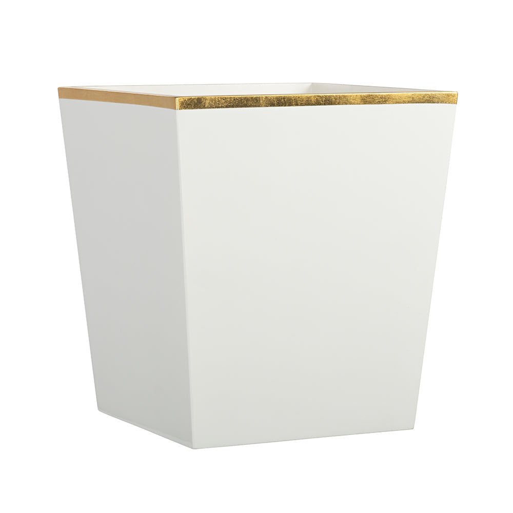 Modern and contemporary white and gold taper bin in lacquer- an ancient craft of Vietnam. High polish finish. Suitable to any bathroom décor. Available in two colours.