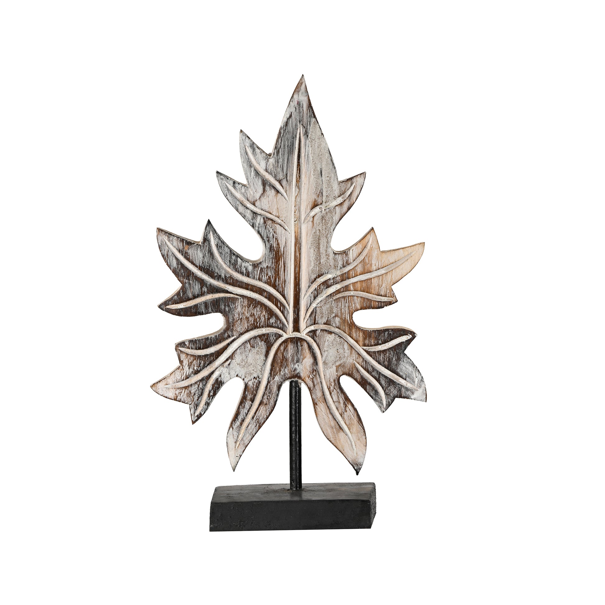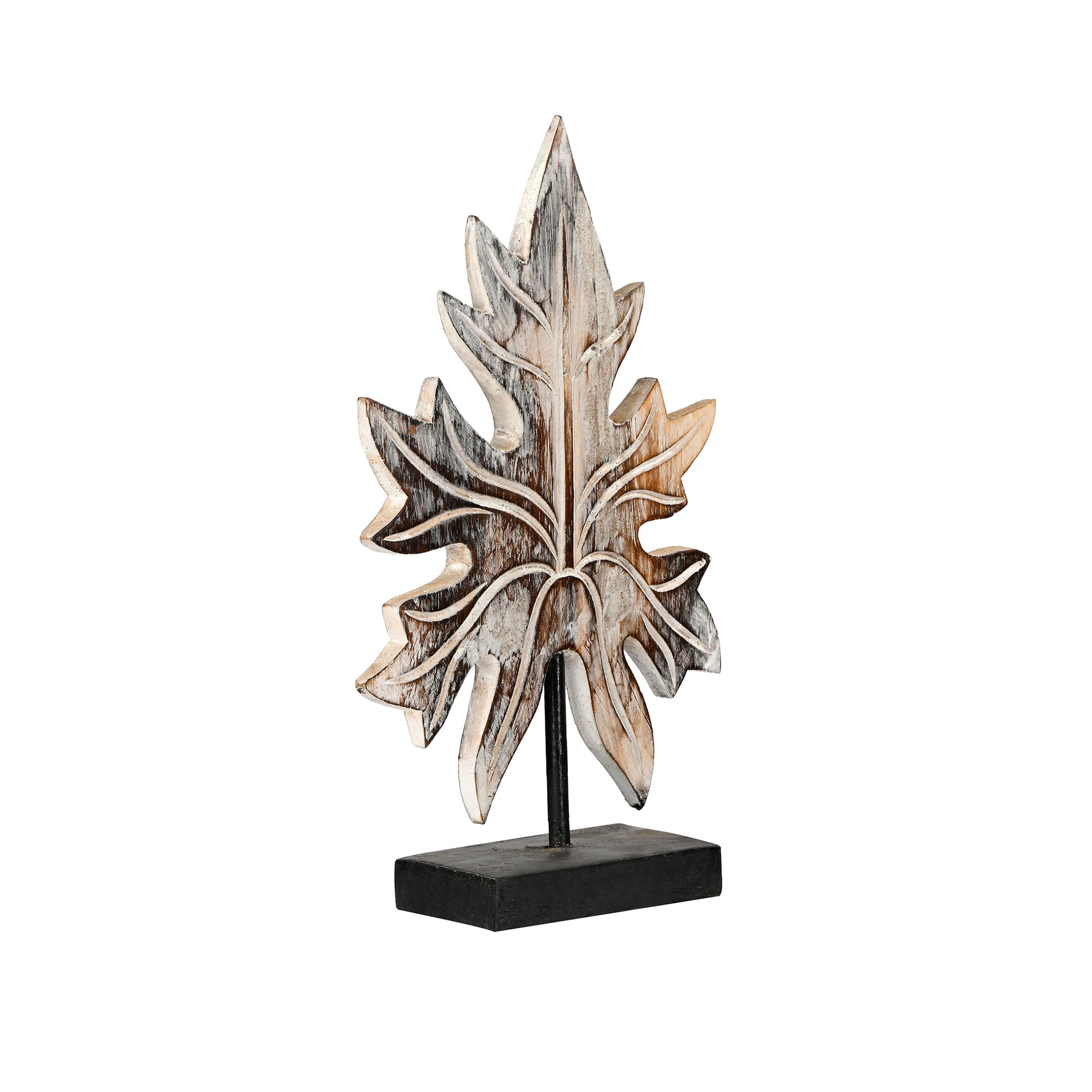 Chinnar / Maple leaf sculpture in antique finish with metal base. A great accent piece for your living room, family room, library or a restaurant.