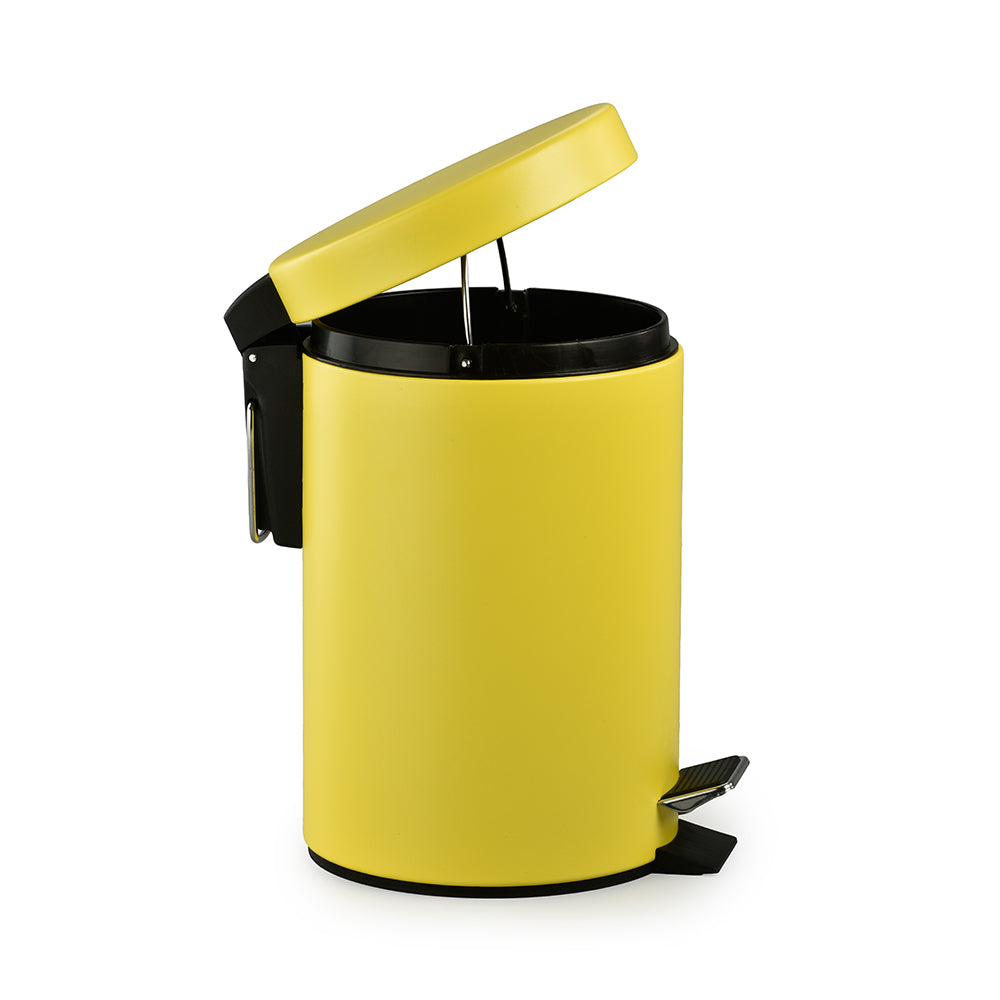 Yellow Dustbin with plastic container inside. High quality German design - metal powder coated body and durable foot pedal. Smooth, and easy close. Available in a variety of colours to suit your preference. Ideal for homes and offices.